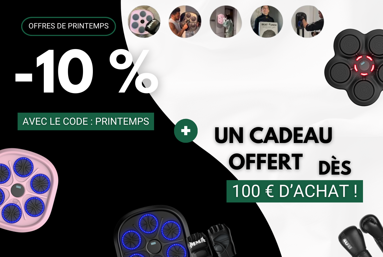 L'expédition est rapide, sous 24 à 48 heures, et la livraison est effectuée en 6 à 10 jours ouvrés. De plus, chaque BeatPunch™ est couvert par une garantie de 1 mois contre les défauts de fabrication. En cas de problème, notre équipe est à votre disposition pour trouver une solution adaptée.